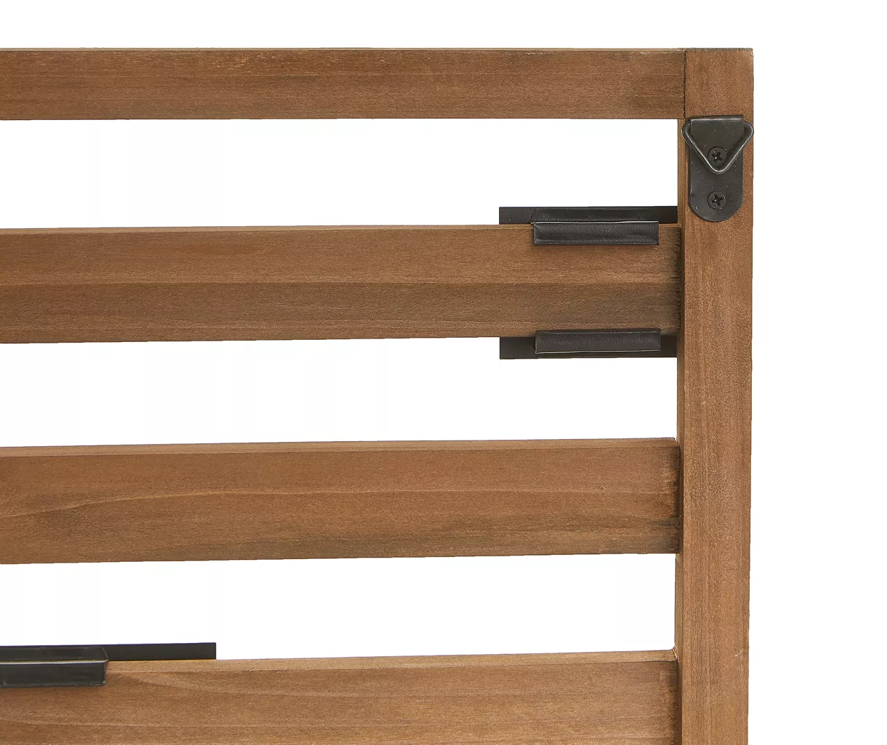 Track the year with the rustic vibes of this wooden calendar featuring markings for each month and day, as well as black sliders that can be moved to highlight the right markings. Hanging loops on the back make it quick and easy to add to your walls.