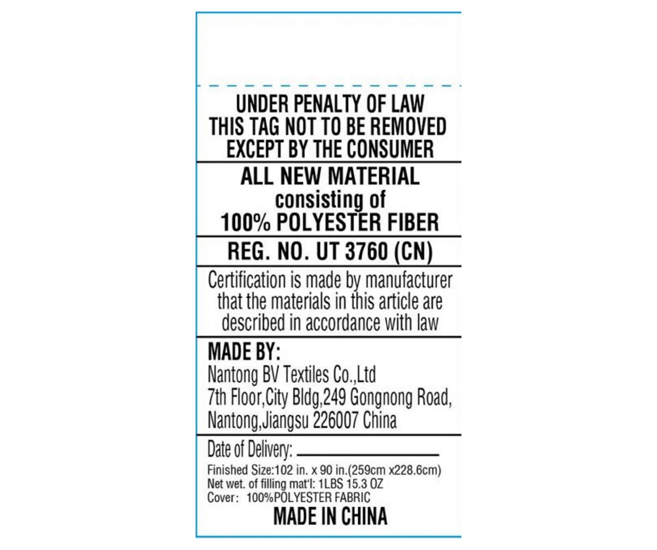 - Product dimensions: 102.0″L x 90.0″W x 1.0″H