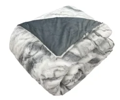 Gray & White Herringbone Queen/King Plush Velvet Blanket