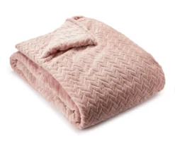 Velvety soft fabric with embossed zigzag lines brings modern designer appeal to this luxuriously cozy blanket from Broyhill. A solid pink hue makes it easy to complement your master or guest bedroom space, and the blanket is machine washable for easy care.