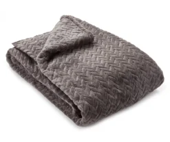 Velvety soft fabric with embossed chevron textures brings modern designer appeal to this luxuriously cozy blanket from Broyhill. A solid tan hue makes it easy to complement your master or guest bedroom space, and the blanket is machine washable for easy care.